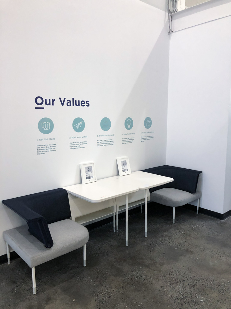 A new revolutionary technology in printing allows us to create an incredibly high quality image directly onto your wall. Your business branding and culture can be beautifully displayed on nearly any surface you choose.